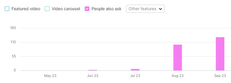 Identificando as necessidades dos usuários, crescemos estrondosamente com a feature People Also Ask. Passamos de apenas 6 palavras, em julho, para 101 em agosto e 130 em setembro!