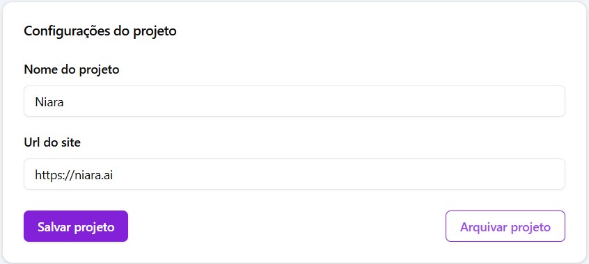 Ao utilizar um projeto, todas as informações geradas pelas funcionalidades da Niara ficarão armazenadas dentro dele.