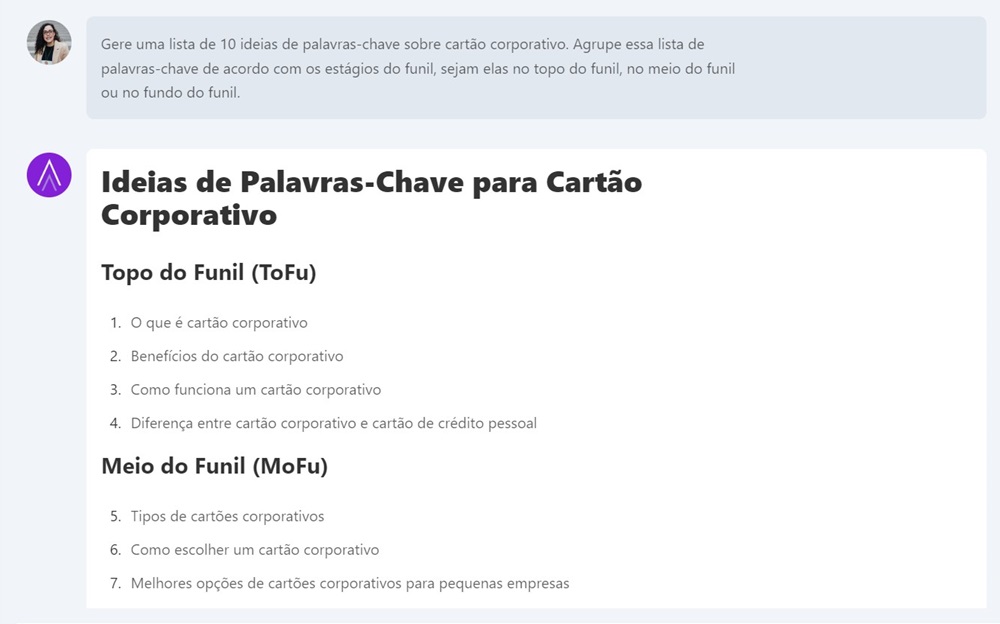 Como já te contamos, o ChatSEO é configurado para SEO e você pode usá-lo para tirar dúvidas sobre demandas da área, como realizar determinadas tarefas e outras questões de sua rotina de trabalho.