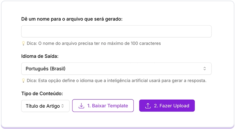 Siga as etapas para validar os campos de sua planilha e clique para gerar o conteúdo em massa.