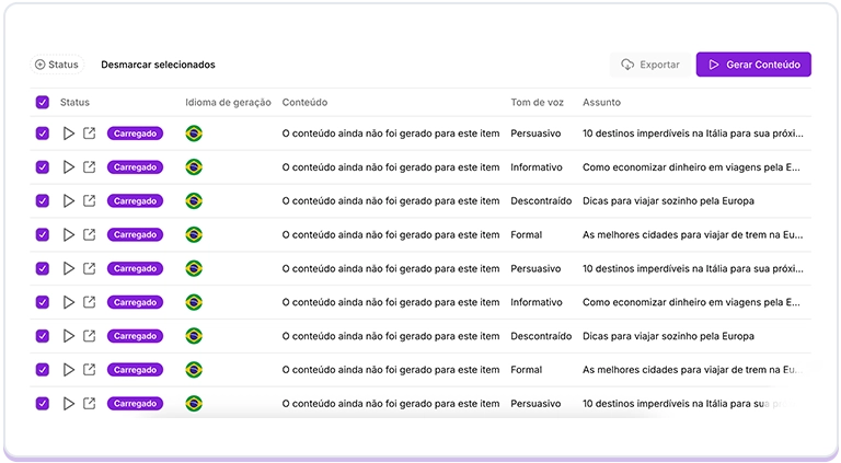 Gere conteúdo em massa em poucos cliques!