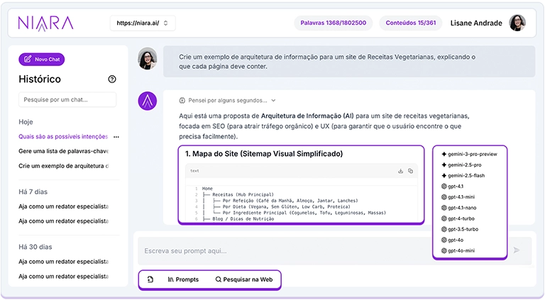 A Niara é sua assistente de SEO 24/7, do conteúdo ao Técnico.