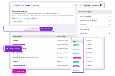 Gere conteúdo otimizado em lote para e-commerces.